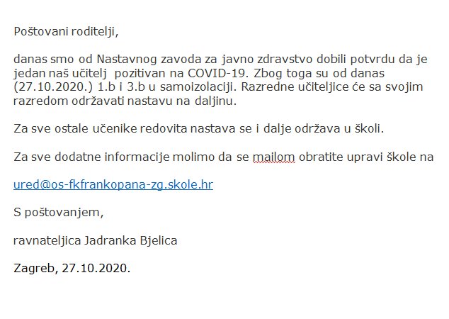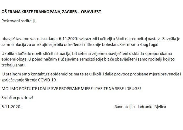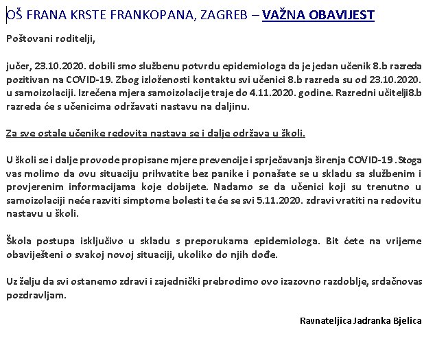 POSTAVLJENA OBAVIJEST: 23. listopad 2020.